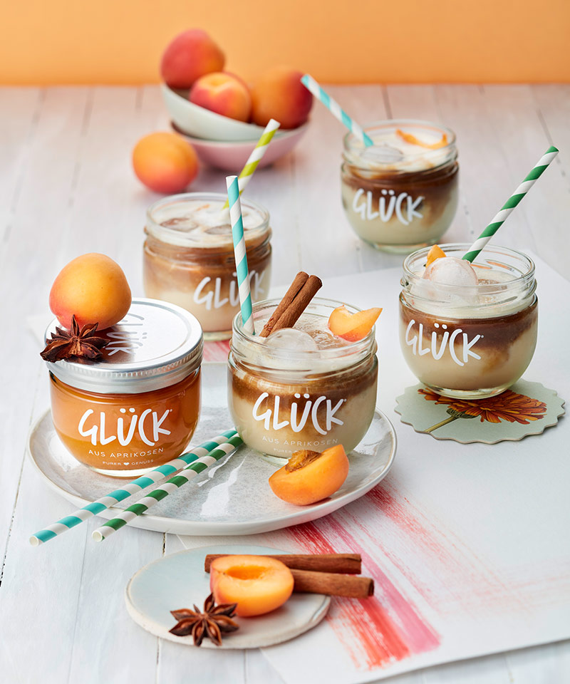 GLÜCK Aprikosen Spiced Latte mit eisiger Frische. Perfekt für den Sommer!