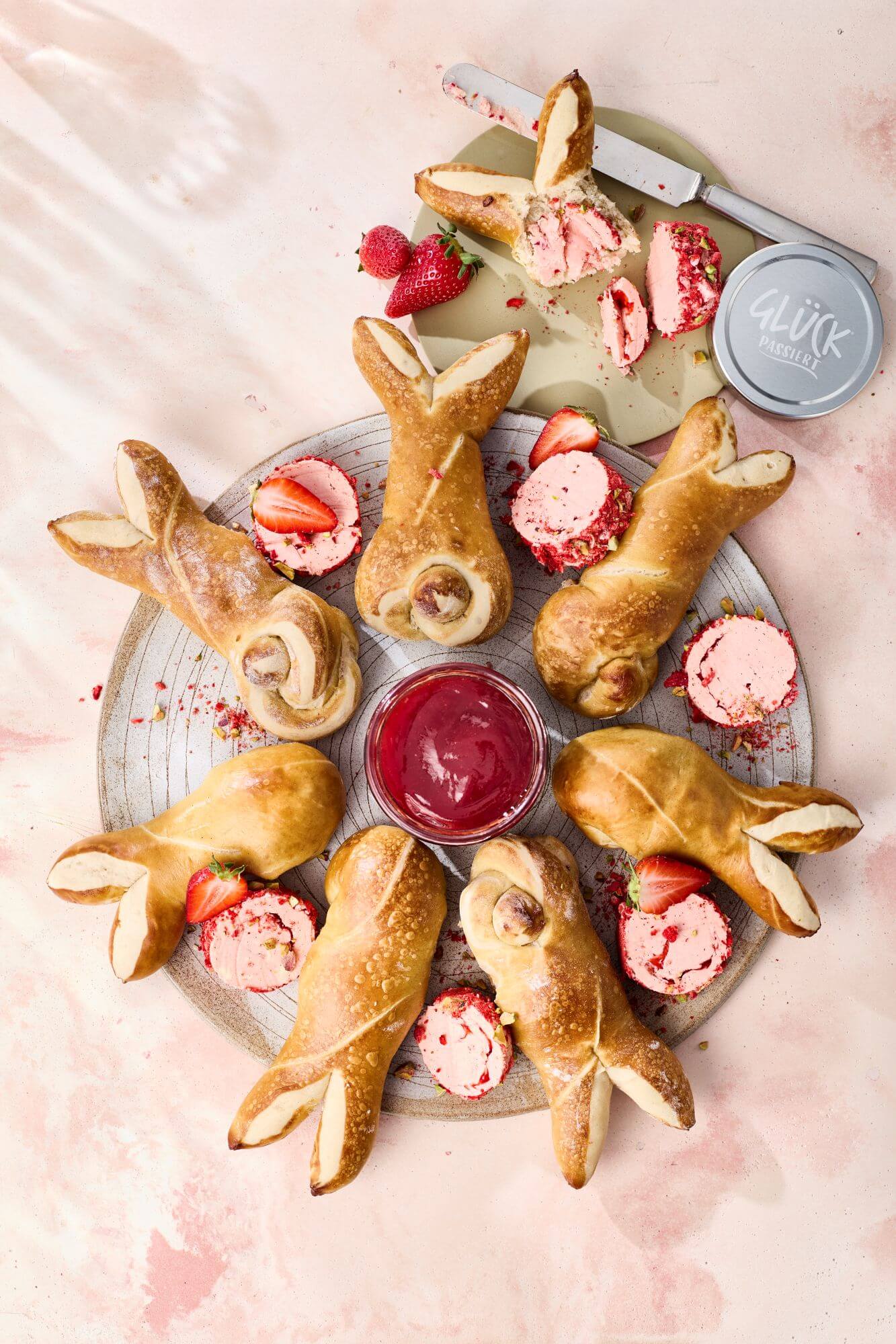 Laugenhäschen mit Erdbeerbutter