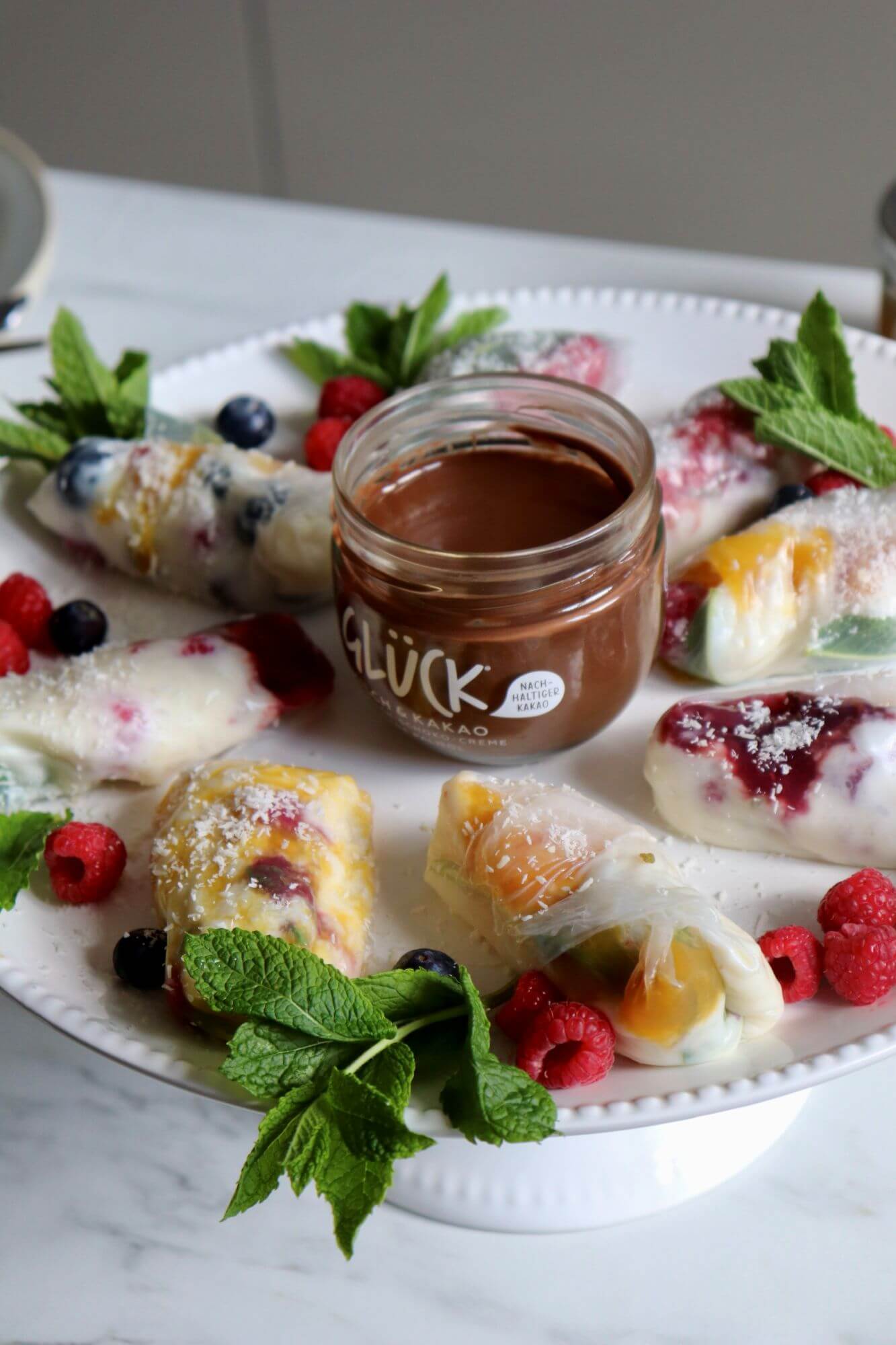 - GLÜCK Milch & Kakao leicht im Wasserbad erwärmen und als Dip zu den Sommerrollen servieren.